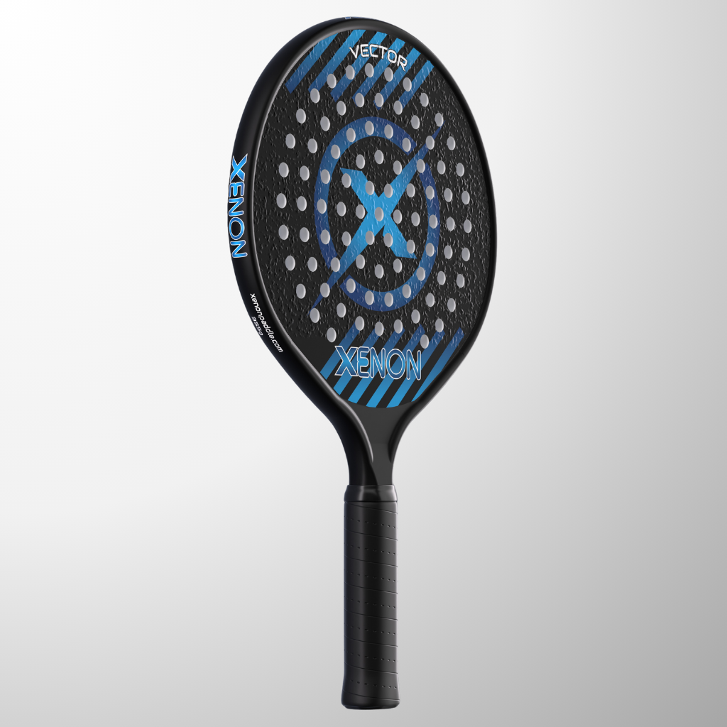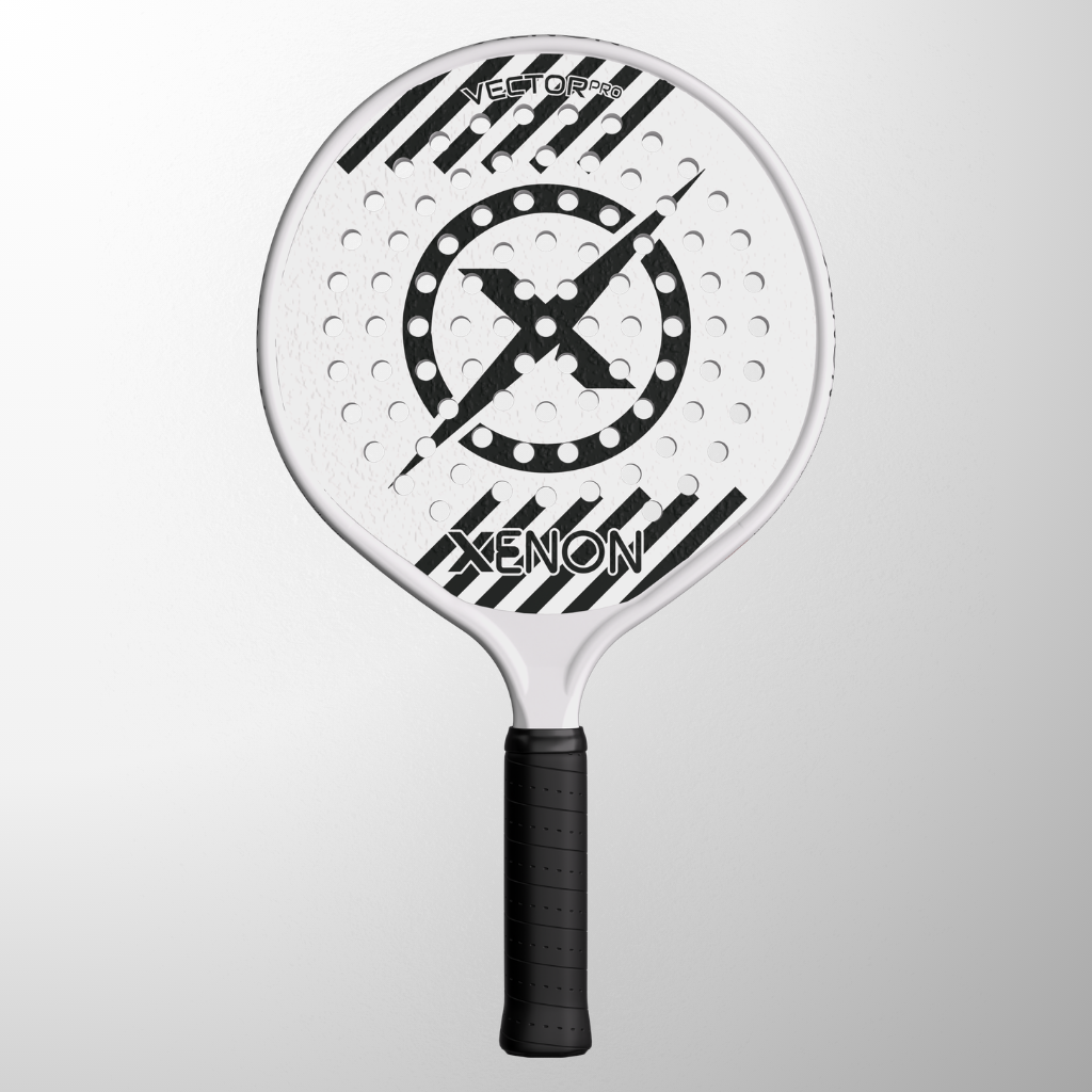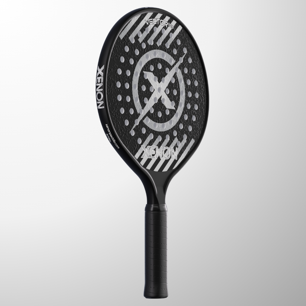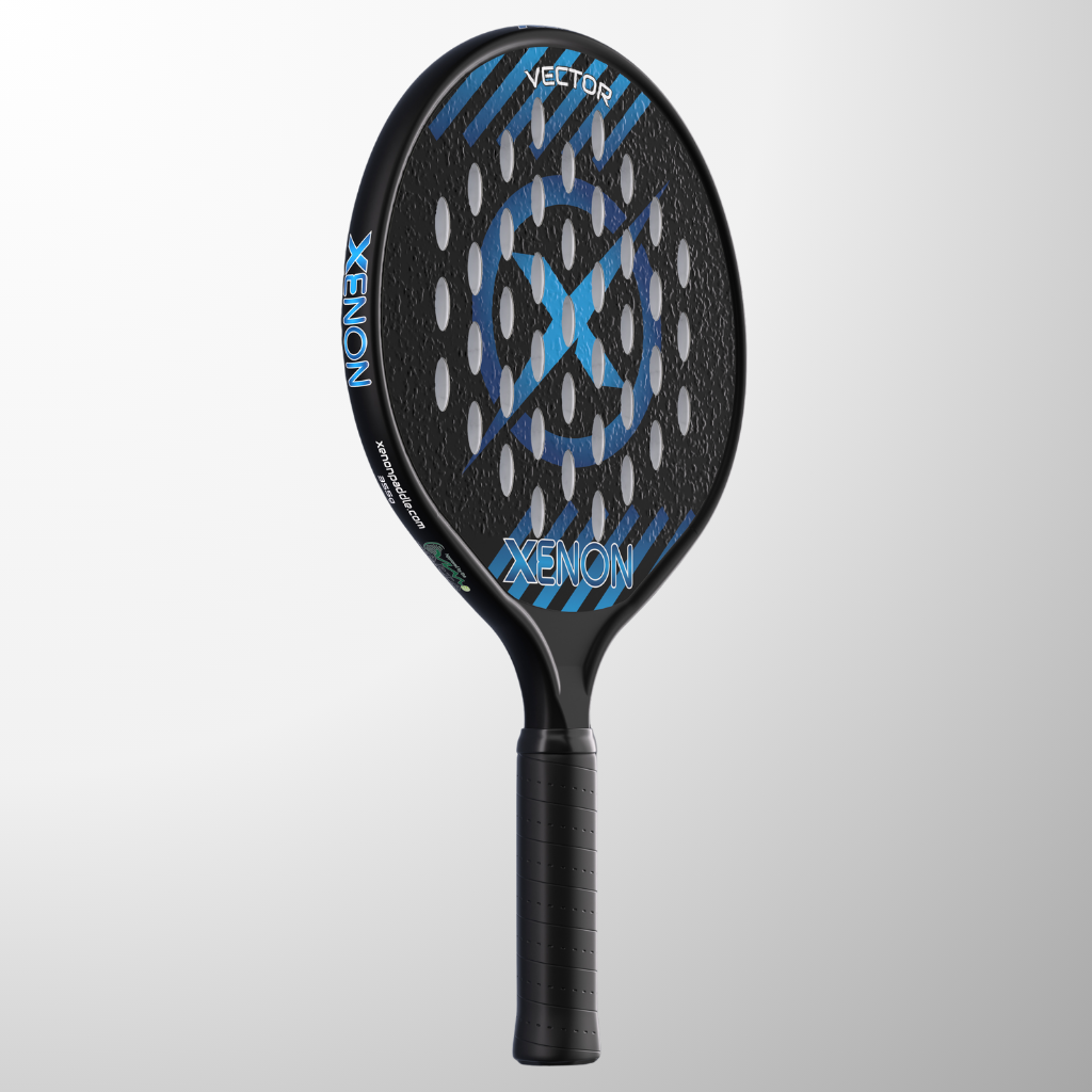 The complete line of Xenon platform tennis paddles. The Vector series with the oversize head, the Prime with the standard size head, the eVortex with the heated handle and the Vortex junior kids paddle.