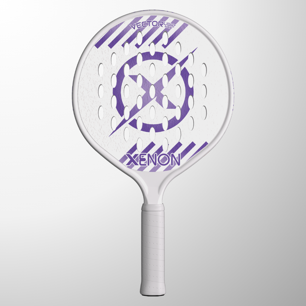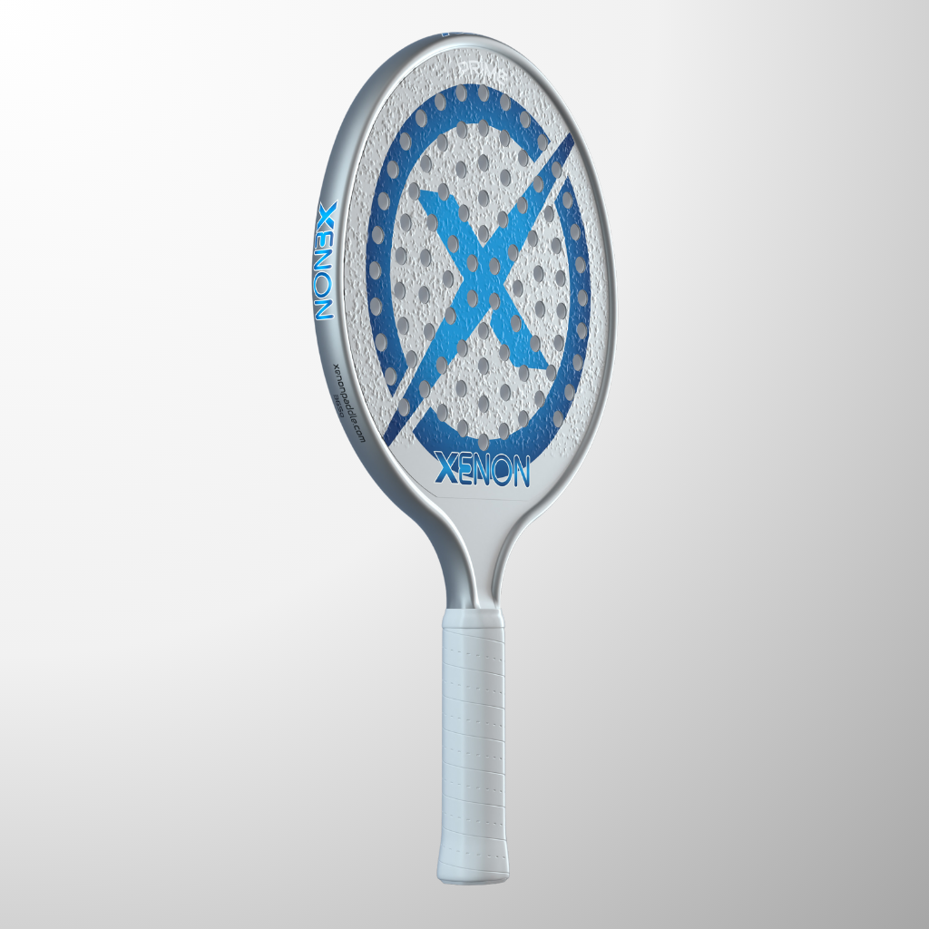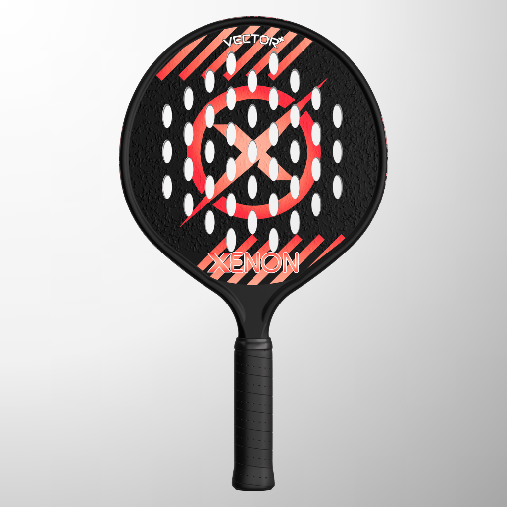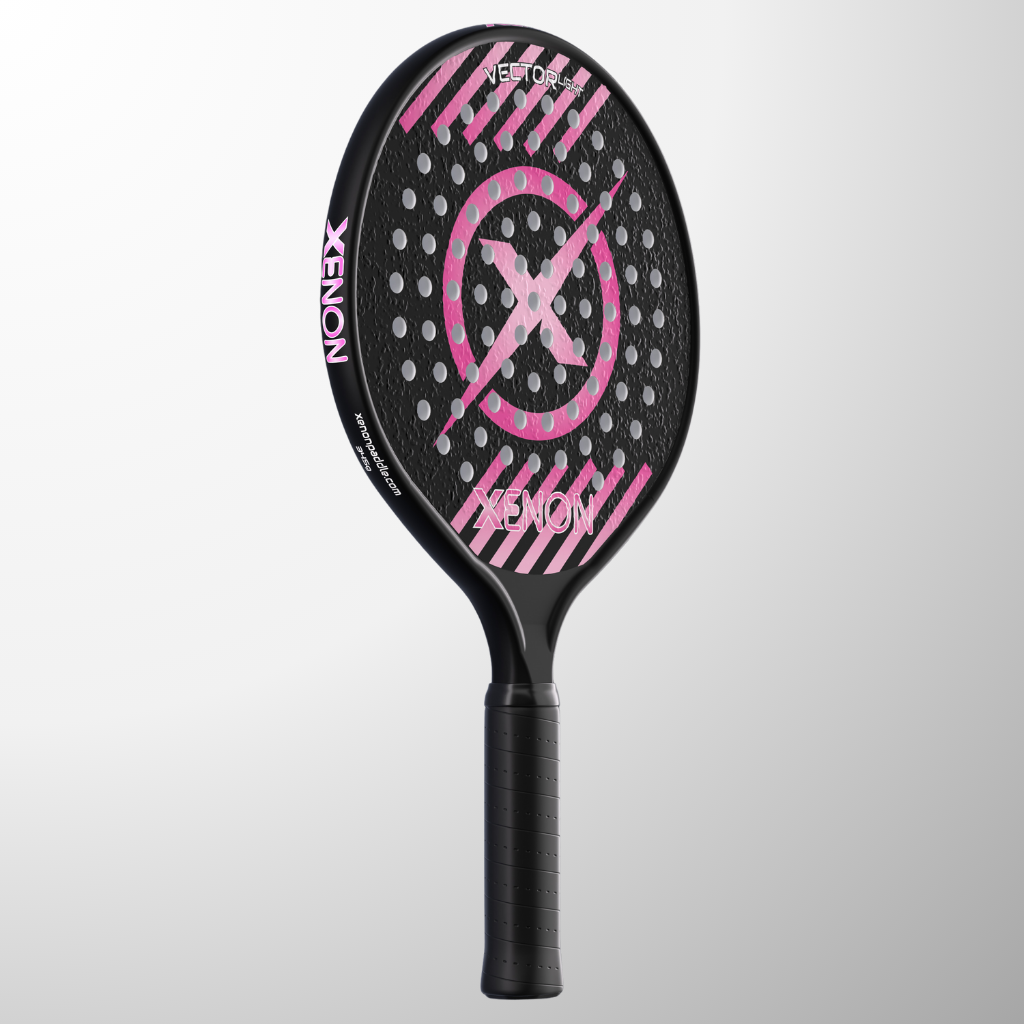 The complete line of Xenon platform tennis paddles. The Vector series with the oversize head, the Prime with the standard size head, the eVortex with the heated handle and the Vortex junior kids paddle.